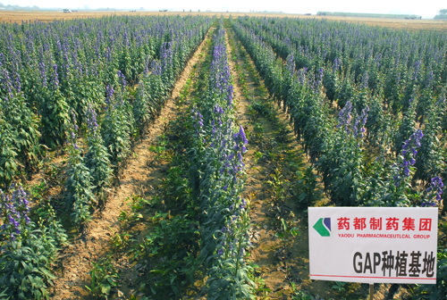 藥都集團是國家級農(nóng)業(yè)產(chǎn)業(yè)化經(jīng)營重點龍頭企業(yè),為充分發(fā)揮龍頭企業(yè)對農(nóng)民增收、農(nóng)業(yè)增效、農(nóng)村發(fā)展的帶動作用,采取“公司+基地”的模式,于2012年在井陘縣蒼巖山鎮(zhèn)洞陽坡投資建設中藥材GAP種植基地。