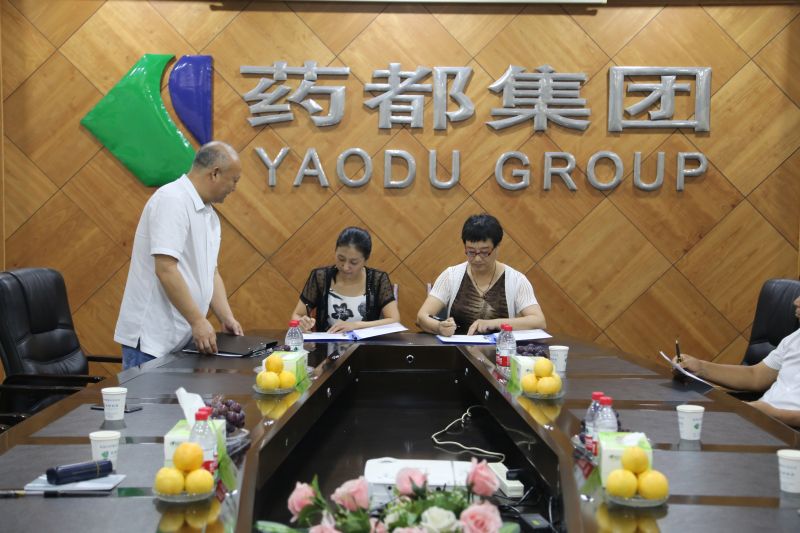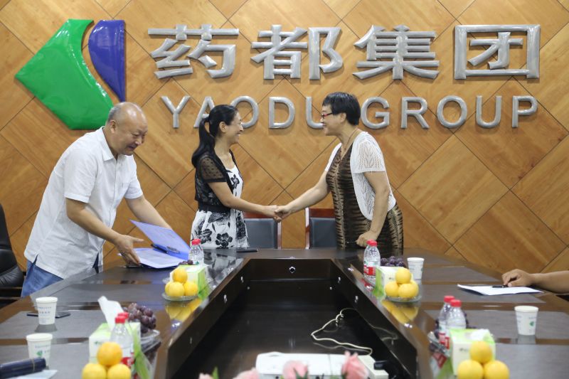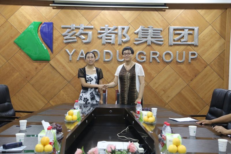 2017年8月6日上午10:00,藥都集團與河北大學藥學院簽約儀式順利召開,藥都集團董事長李曉恩與河北大學藥學院院長趙燕燕出席簽約儀式。